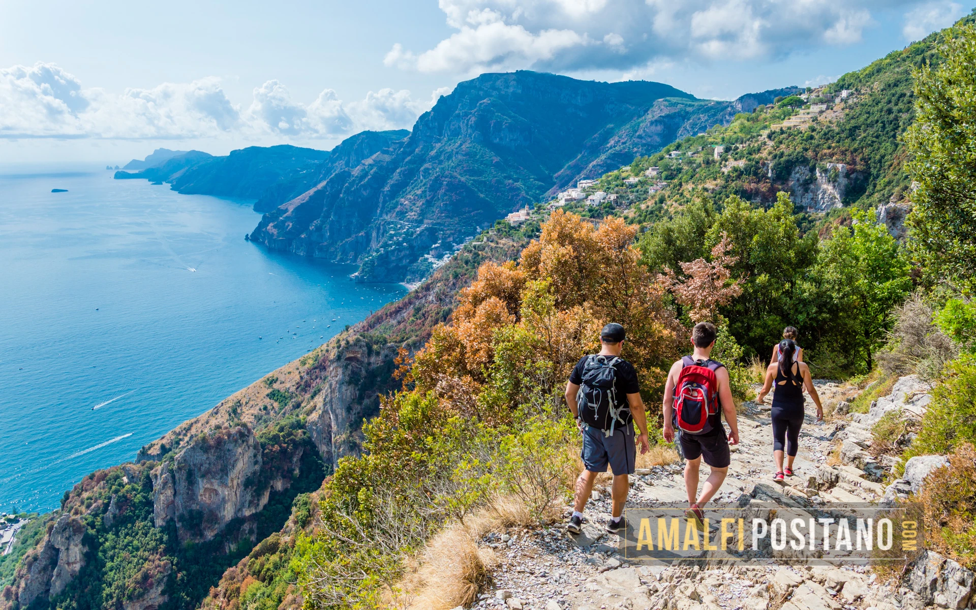 The Path of the Gods (Sentiero degli Dei) is one of the most famous and scenic hiking trails on the Amalfi Coast. It offers breathtaking panoramic views of the sea, mountains, cliffs, and Positano, with small villages far below.