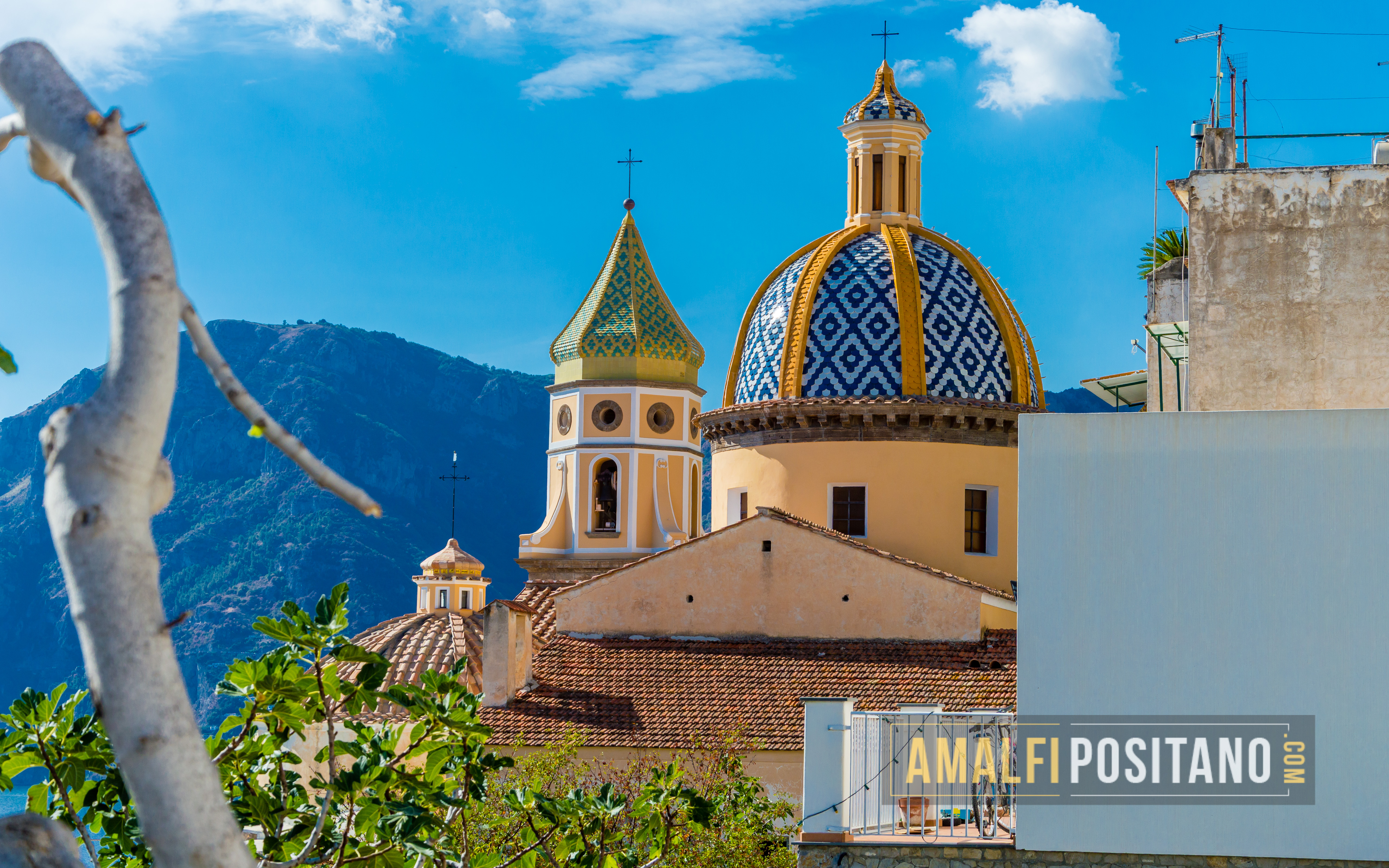 Praiano - Cupola della Chiesa di San Gennaro con le montagne sullo sfondo