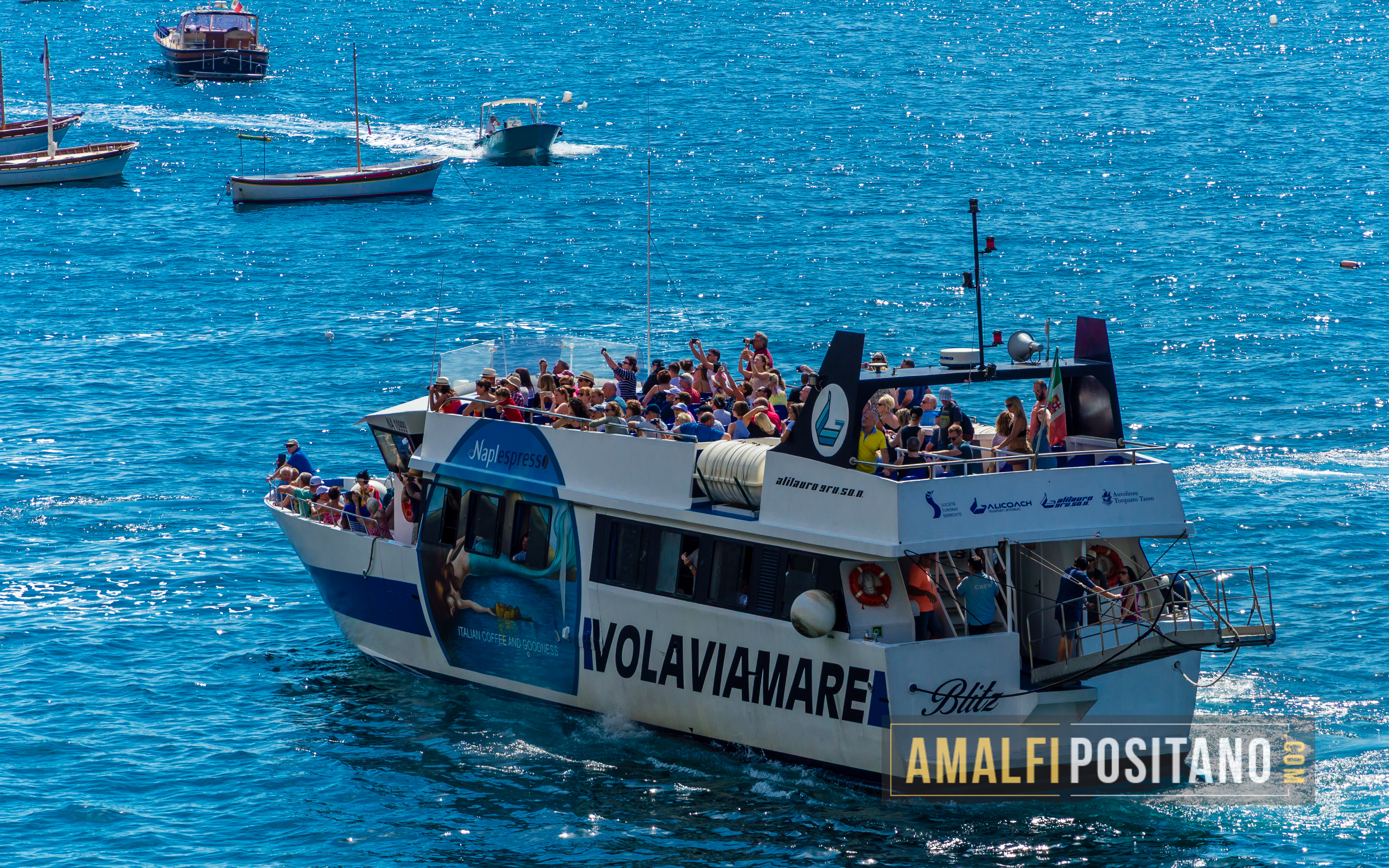 Побережье Амальфитаны - Катер с туристами на Амальфитанском побережье