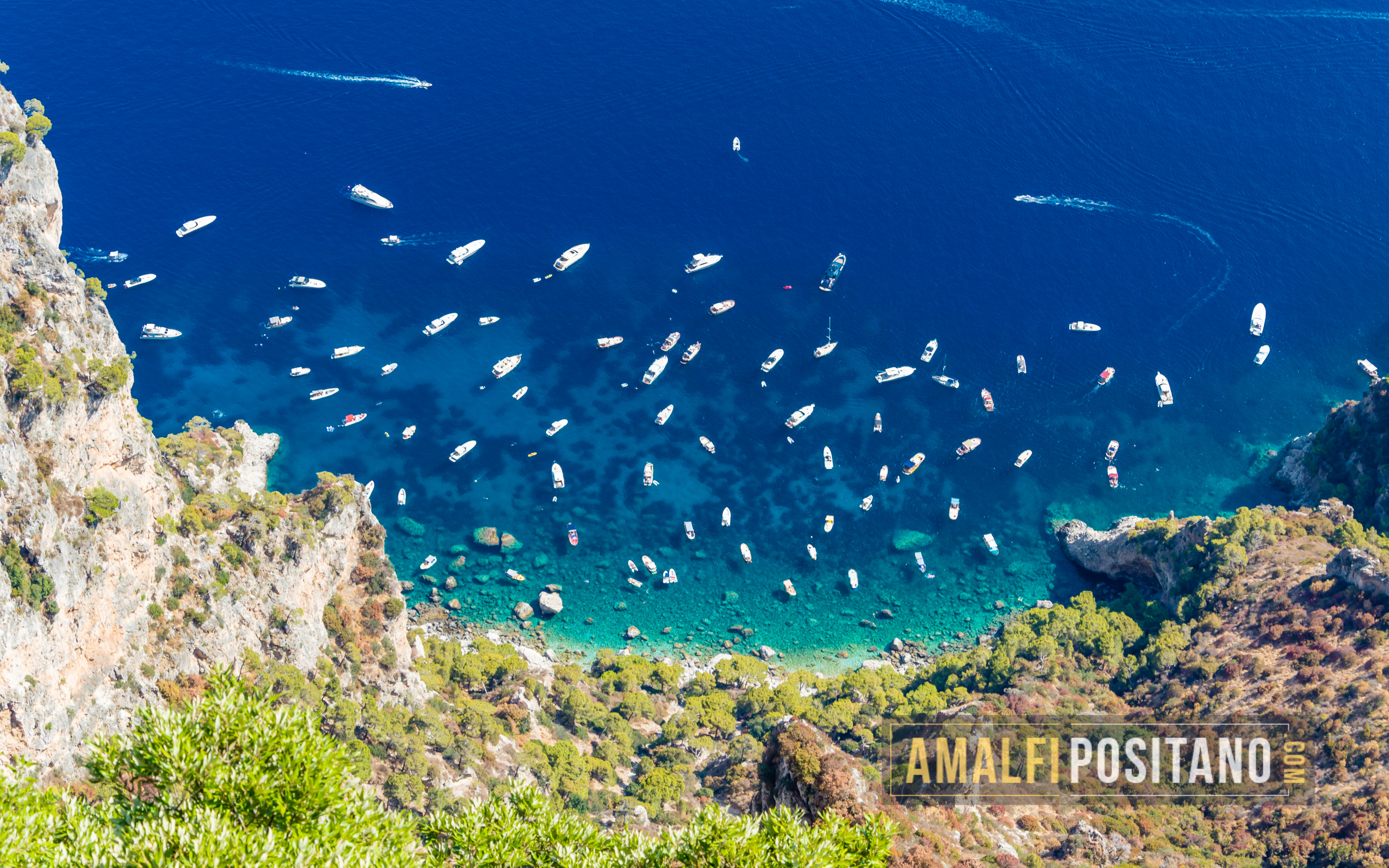 Остров Капри - Вид на бухту с катерами с Монте Соларо